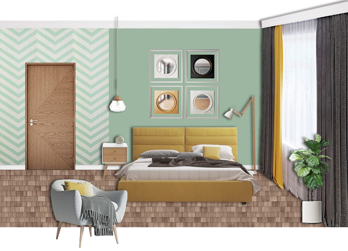 Детская младшего ребёнка 4года в спокойных тонах. Детская старшего сына 11 лет с яркой фреской «граффити», навесным креслом и выходом на балкон. В прихожей, коридорах и в спальне использовать декоративные панели.